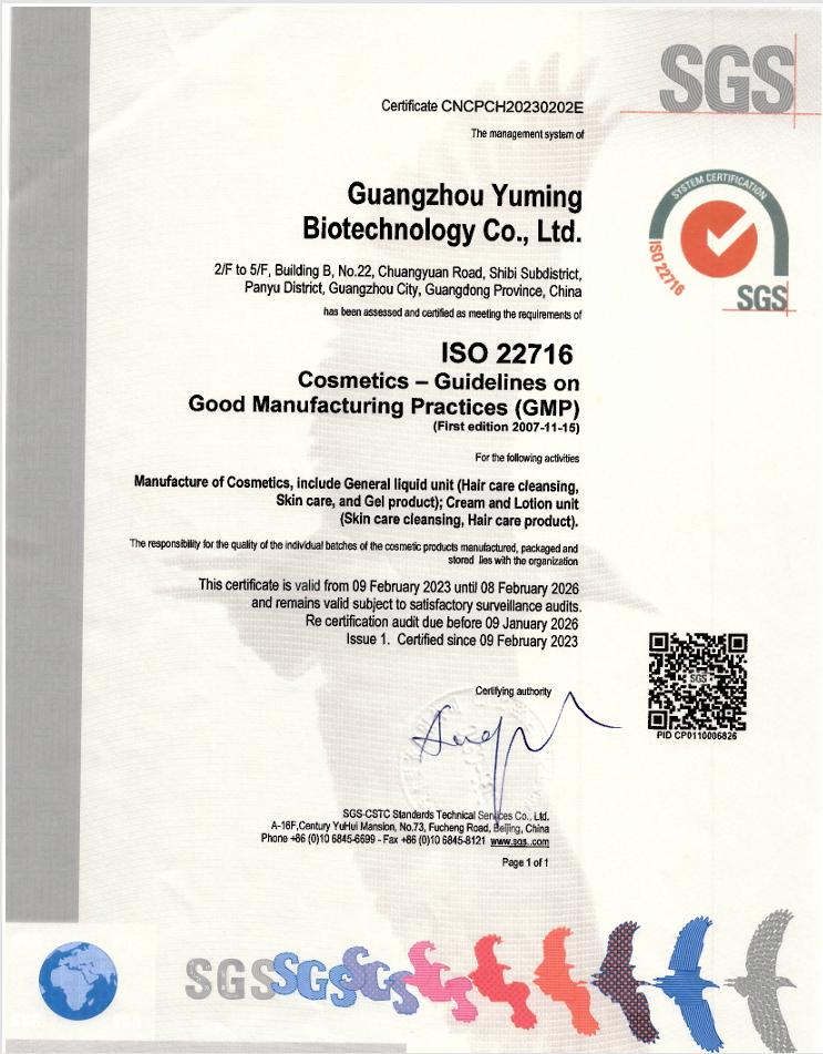 We can provide all the documents required for customs clearance and registration (MSDS, product formulations, COA, product stability assessment reports, etc.). Free trade certificates, halal certification, FDA certification, etc. are not a problem. Please feel free to contact us.Our company is FDA, GMP, ISO 22716 certified.